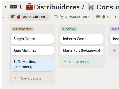 Claridad visual inmediata. Clasifica a tus contactos por temperatura (Tiburones, Ballenas, Erizos…) y arrástralos por el embudo. Sabrás al instante quién está listo para firmar el Pack Master y quién necesita madurar.